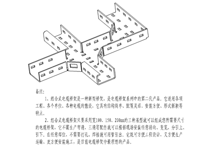 托盘式电缆桥架是石油、化工、电力、轻工、电视、电讯等方面应用最广泛的一种。它具有重量轻、载荷大、造型美观、结构简单、安装方便等优点。它既适用于动力电缆的安装,也适用于控制电缆的敷设。托盘式电缆桥架其表面处理分为镀锌、喷塑和喷漆三种,在重腐蚀环境中可做特殊防腐处理。用喷塑处理时,考虑可靠接地,需用接地排。盘式电缆桥架备有护罩,需要配护罩时可在订货时注明或按照护罩型号订货,其所有配件与梯级式、槽式、桥架通用。